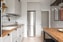 Köket renoverades 2020 och är ett riktigt trivsamt rum med gott om både arbetsyta och förvaring. Grå skåpsluckor möter ett stilrent vitt kakel som löper hela vägen upp till taket, både praktisk och estetiskt tilltalande. Bänkskivan i ljus ek tillför värme och kontrast, och framför det stora fönstret finns en naturlig plats för matbordet. Här får flera middagsgäster plats utan att det känns trångt, och ljuset som flödar in förstärker rummets luftiga känsla. Maskinellt är köket utrustat med kyl/frys, ugn, spis och fläkt.