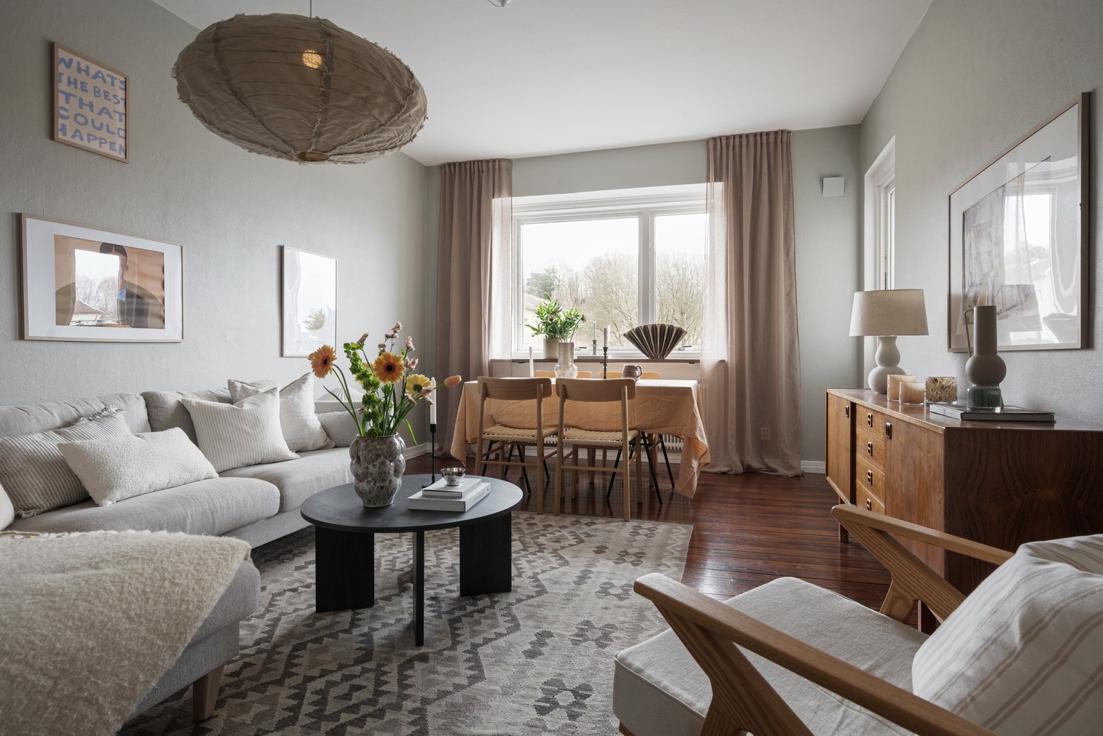 Välplanerad tvåa med solig balkong och öppna sällskapsytor