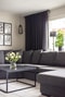Vardagsrummet bjuder in till avkoppling och umgänge i en trivsam miljö med stora fönsterpartier som skapar både ljus och rymd. Den öppna planlösningen ger flera möbleringsalternativ och huset präglas genomgående av stilrena golv och en ljus interiör som förstärker känslan av rymd.