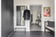 Till höger om entrén ligger bostadens stilrena badrum utrustat med badkar. I direkt anslutning finns den praktiska tvättstugan med tvättmaskin, torkmöjligheter, grovvask samt goda förvaringsutrymmen. Vidare når ni garage med smidig access direkt in i huset samt ett intilliggande rum som idag används som hemmakontor – perfekt för företagare, tonåring, gästrum eller hobbyrum – dessutom med egen ingång.