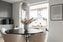 Det rymliga köket, signerat Marbodal, erbjuder gott om förvaringsmöjligheter och arbetsytor. Här finns all tänkbar bekvämlighet och utrustningen består av induktionshäll, inbyggd ugn och mikrovågsugn, helintegrerad diskmaskin, spisfläkt och snyggt stänkskydd i grå nyans. Framme vid fönstret har en matplats för 6-8 personer sin givna plats.
