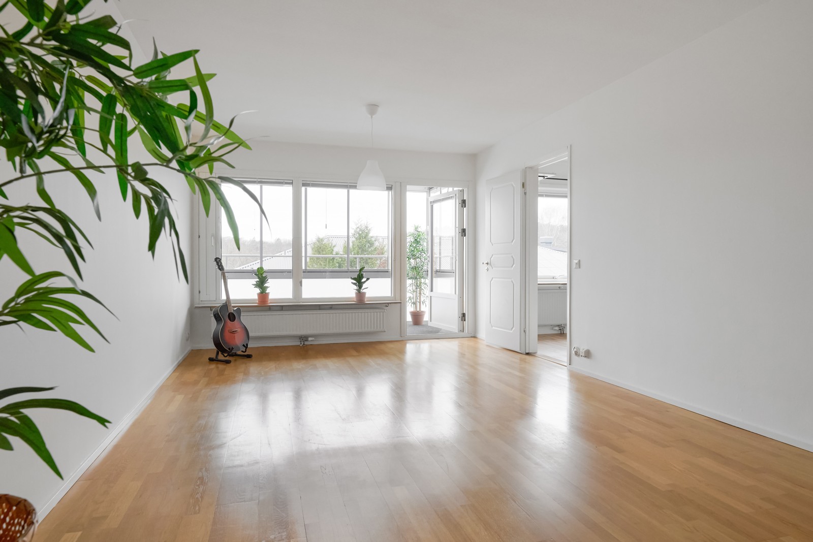 Välplanerad trea med inglasad balkong och parkeringsplats!