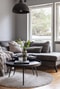 Vidare in i bostaden ligger det öppna vardagsrummet med ett stort fönsterparti som ger mängder av naturligt ljus till både rummet och hallen. Vardagsrummet rymmer både soffa och matbord. Härifrån nås den stora härliga balkongen med utsikt mot de lummiga omgivningarna.