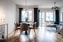 Från hallen öppnar sedan lägenheten upp sig i en härlig öppen planlösning. Fina fönsterpartier skänker rummet rikligt med ljus och ger plats för matbord.