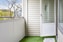 Slutligen i anslutning till hallen ligger badrummet. Väggarna är kaklade i vitt med blå bård och på golvet ligger plastmatta i blåa toner. Här finns dusch, handfat, badrumskåp, toalett och tvättmaskin. Här finns även ett praktiskt vädringsfönster.