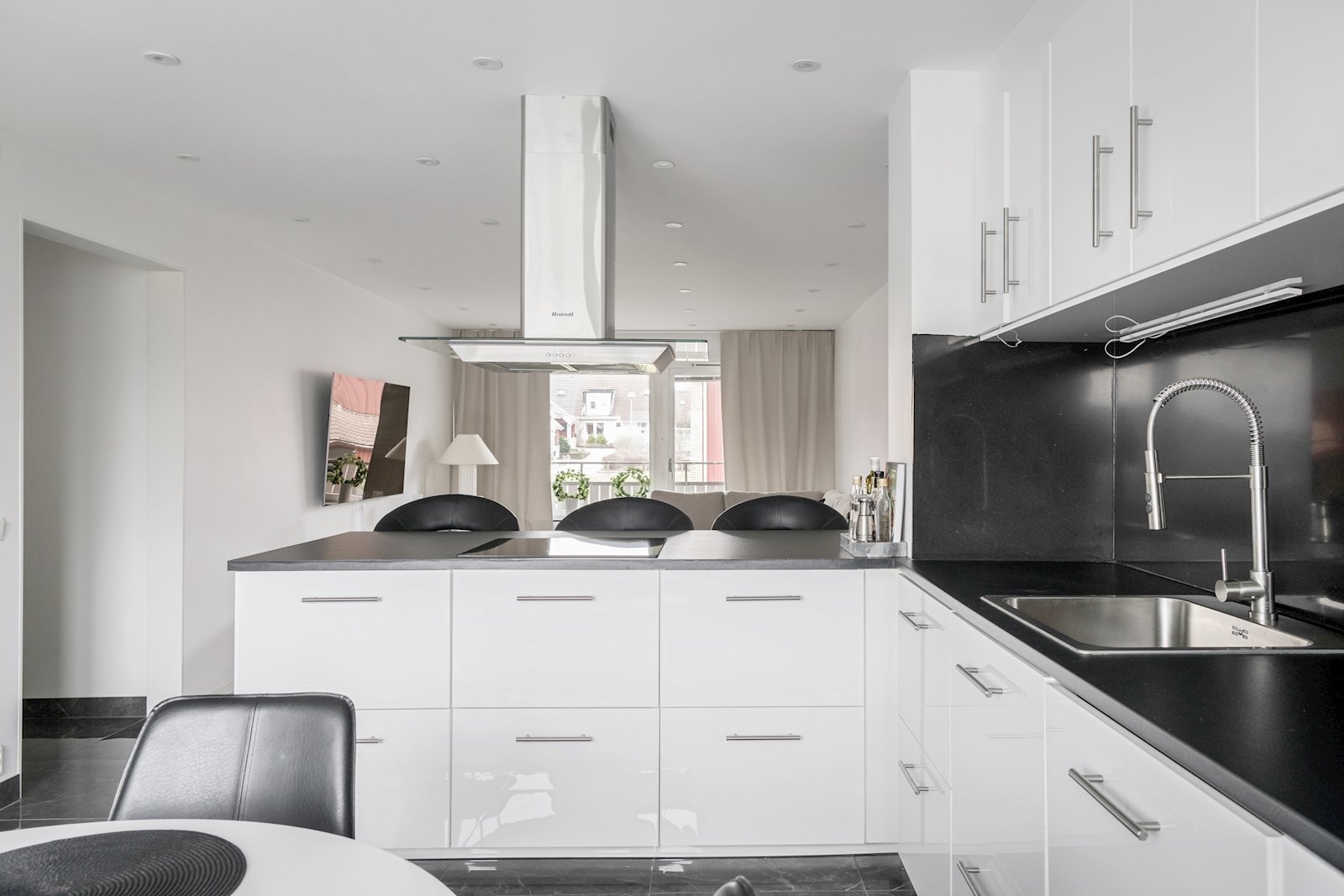 Helrenoverad genomgångstrea med ett vackert kök och härlig västerbalkong