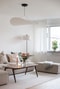 Med halvöppen planlösning från köket nås även vardagsrummet. Ett rymligt och ljust rum med lättmöblerade ytor och gott om plats för soffgrupp.