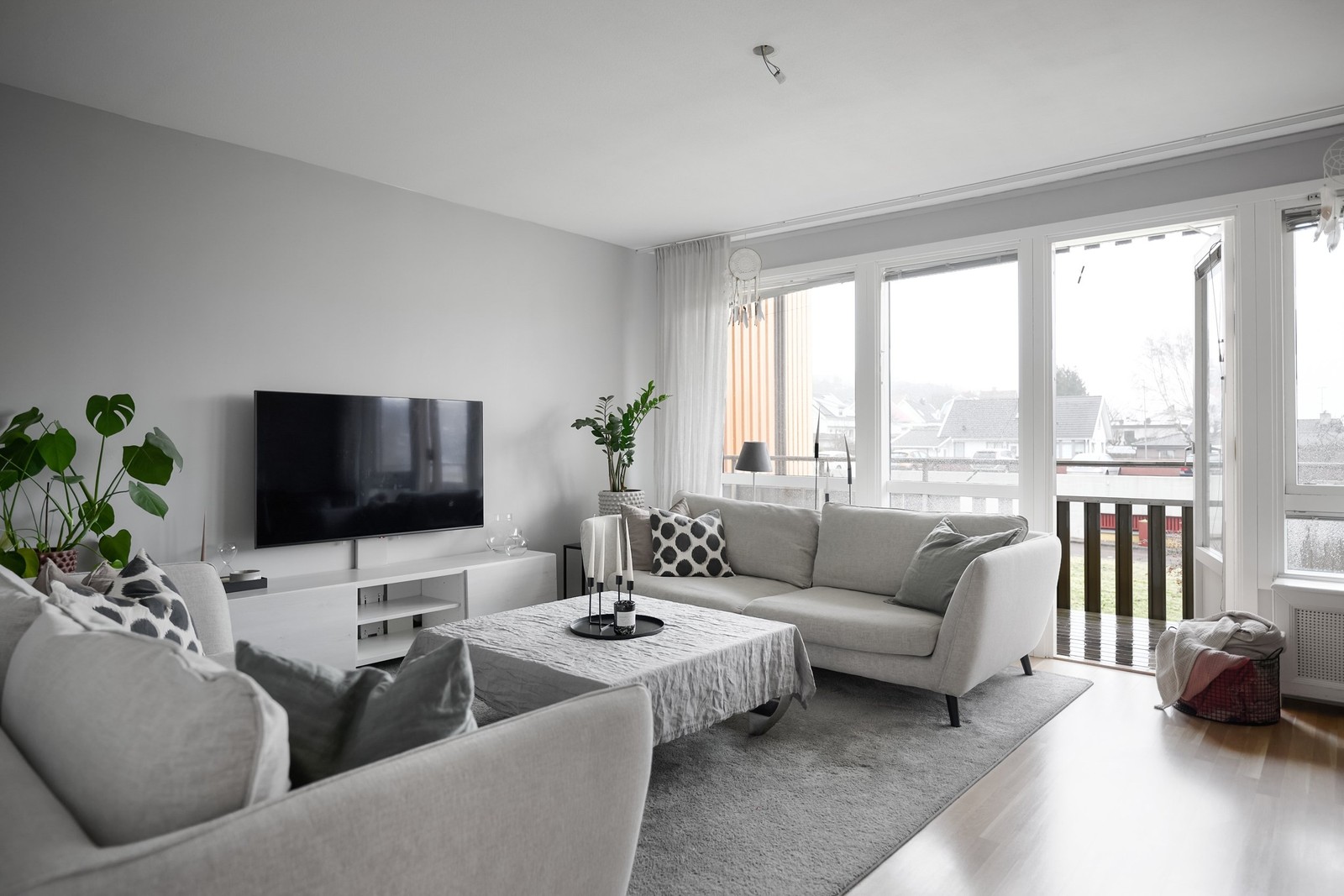 Vidare finner ni bostadens väl tilltagna vardagsrum som har gott om plats för en stor soffgrupp med tillhörande möblemang. Härifrån når ni även bostadens balkong som går att möblera med båda loungemöblemang samt cafébord och stolar om så önskas.