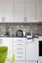 En trappa upp är de sociala ytorna samlade. Köket i jordnära färger är rymligt och trivsamt med gott om förvaringsmöjligheter och arbetsytor. På golvet ligger ett grått laminatgolv och väggarna pryds av tapet som snyggt bryts av med en grå panelvägg. Naturlig matplats invid fönstret som med lätthet rymmer 4–6 personer. Här kan gästerna slå sig ner medan maten står och tillagas. Inredningen är ljus med rostfri bänkskiva och inslag av träytor. Den maskinella utrustningen består av kyl och frys, induktionsspis med ugn, fläkt samt diskmaskin.