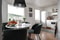 Här finns plats för stor soffgrupp med tillhörande möblemang samt TV-möbel. Plats finns också för eventuellt matsalsmöblemang eller förvaringsskåp. Ljusa väggar med en mörkare fondvägg och på golvet ligger parkett. Härifrån nås bostadens stora balkong i österläge.