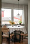 Köket är rymligt och praktiskt utfört i vinkel med tidlösa vita fronter med mönstrad kakel ovan arbetsytorna. Här finns gott om plats för större frukostbord. Den maskinella utrustningen består av diskmaskin, ugn med häll, fläkt samt kombinerad kyl och frys.