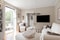 Från hallen förs ni vidare in i bostadens kök och vardagsrum i öppen planlösning. Här strömmar ljuset fritt från stora fönsterpartier vilket bidrar till rummets luftiga och harmoniska känsla. Vardagsrummet kan enkelt möbleras med soffa, soffbord och tv-möbel. Det är även från vardagsrummet som du når bostadens härliga balkong som omges av grönska.