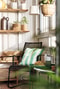Till höger om hallen är det trivsamma vardagsrummet placerat. Här breder den vackra fiskbenparketten ut sig och ger en härlig karaktär till rummet. Väggarna är slätmålade i vitt som skapar en luftig atmosfär tillsammans med den närliggande naturen som via det stora fönsterpartiet gör sig påmint. Rummet har vid behov plats för både soffgrupp och matsalsbord samt diverse avlastningsmöbler. Från såväl vardagsrum som det större sovrummet nås den inglasade balkongen som är en klar tillgång för bostaden och lockar till många avkopplande stunder. Härifrån njuter du av ett soligt söderläge och med reglerbar inglasning så breddas ytans användningsmöjlighet till stora delar av året. Plats för cafémöblemang med grönskande blomsterarrangemang. Golvet är belagt med trätrall.