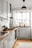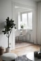 Vardagsrummet och köket har ett delvis öppet samband då en vägg tagits ner och öppnat upp, vilket ger en social prägel till denna del av lägenheten. På golvet i vardagsrummet ligger den fiskbensmönstrade originalparketten och väggarna är slätmålade i sober färgskala, vilket ger en neutral bas att inreda utefter. Ett stort fönsterparti berikar rummet med ljuset och låter det falla över den vackra parketten. Plats för soffgrupp med kompletterande möblemang.