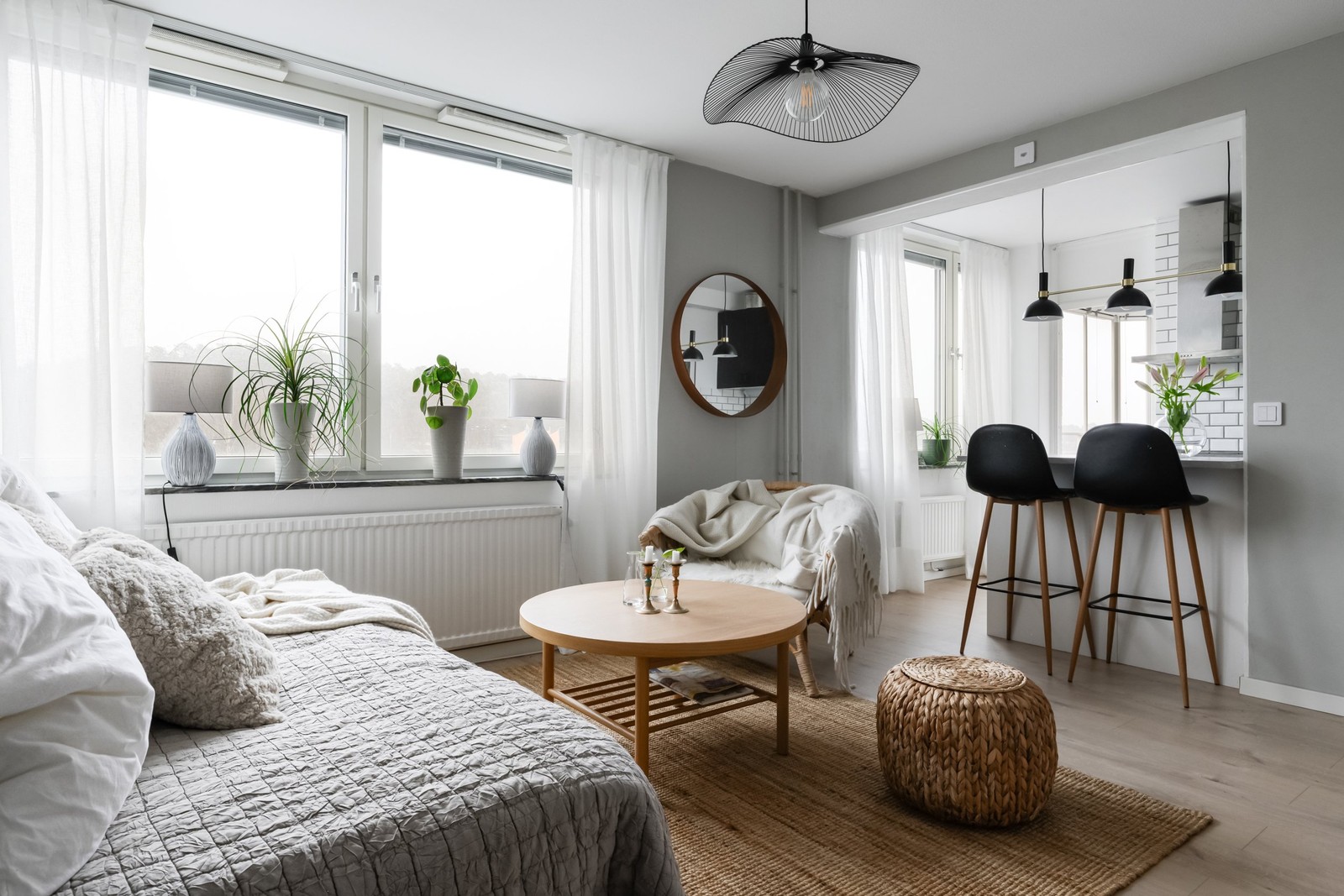 När du kliver in möts du av en välkomnande hall med goda förvaringsmöjligheter och en rymlig klädkammare. Planlösningen är genomtänkt och kvadratsmart, vilket gör bostaden både lättmöblerad och funktionell. Allrummet är ljust och luftigt med plats för både soffgrupp, säng och kontorsplats. Härifrån nås den inglasade balkongen med fri utsikt utan insyn - en lugn och trivsam plats för morgonkaffet eller en avkopplande kväll. Köket ligger i öppen anslutning till rummet, en planlösning som bidrar till en mer social atmosfär. Köket är modernt renoverat i en tidlös design och erbjuder goda arbetsytor, bra förvaring samt en praktisk köksö som fungerar både som arbetsyta och matplats.
