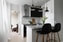 Köket ligger i öppen anslutning till rummet och har en social utformning med köksö som både ger extra arbetsyta och fungerar som en naturlig samlingspunkt. Här finns gott om förvaring och goda möjligheter till matlagning samtidigt som du enkelt kan umgås med gäster.