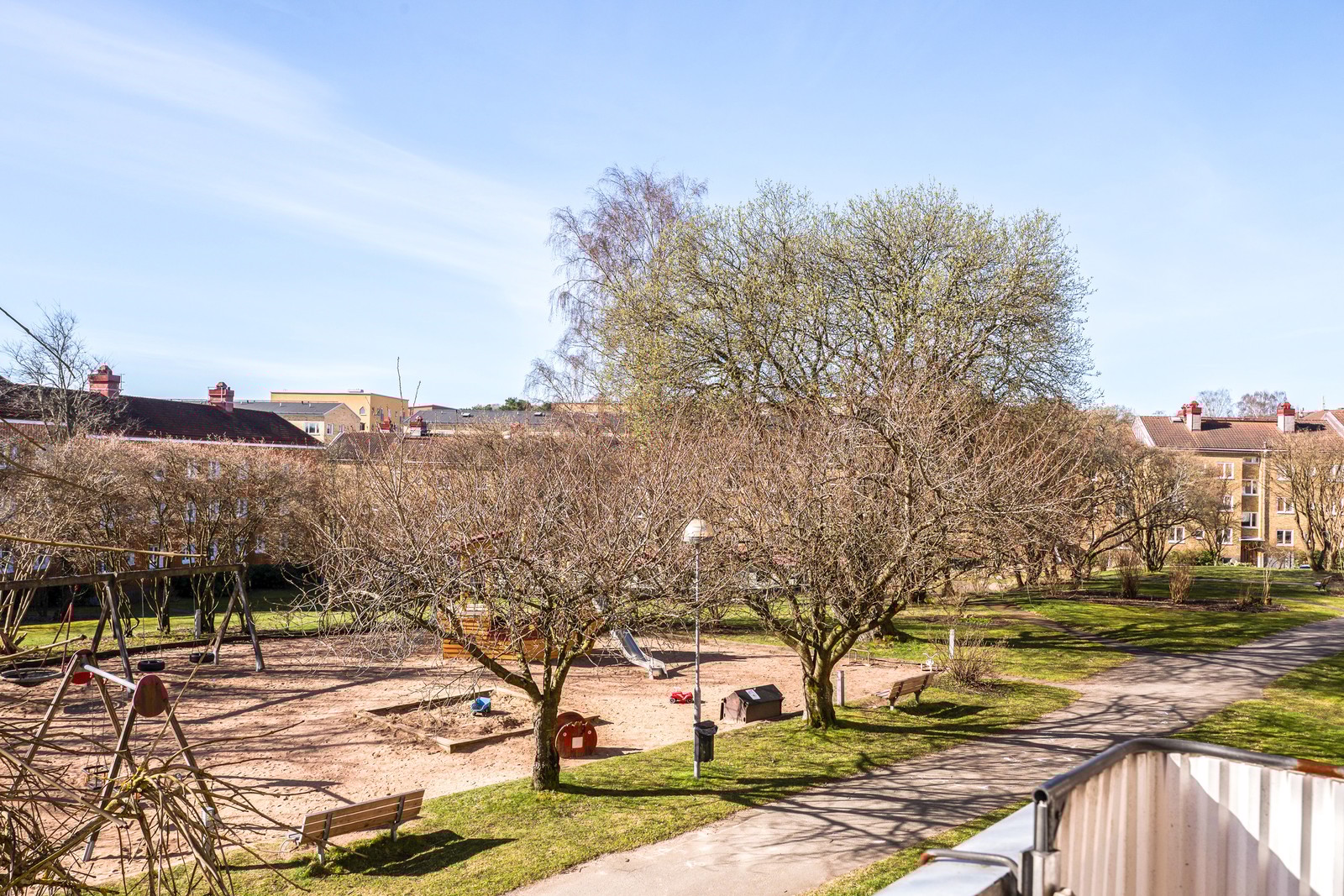 Marklandsgatan är områdets knutpunkt när det gäller kommunikation och här tar du dig smidigt vidare till andra delar av Göteborg. I Högsbo industriområde ligger köpcentrumet 421 och här har du ett komplett vardagsutbud med mataffär, restauranger, apotek och shopping. Frölunda Torg med sin förstklassiga shopping nås på under tio minuter med spårvagn och innerstans gator som Vallgatan och Magasinsgatan på ungefär en kvart.