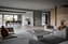 Det andra signaturgolvet, en exklusiv ekparkett från klassiska Kährs (14 mm) tar över efter klinkern och försvinner rakt fram in i villans djup och sprider sig åt båda håll över de snudd på enorma sällskapsytorna. Dessa ligger i öppen planlösning med matsalen och ett massivt ljus faller in från tre olika väderstreck. Där utanför skymtar havet till mellan skyddande grönska. Det höga läget i sluttningen mot havet blir uppenbart. Även om ytorna är mycket stora är känslan av trivsam rumslighet tydlig tack vare synliga takbjälkar, riktade downlights och väggarnas inslag av patinerat timmer respektive sober granitkeramik. Den ljusa tonen känns tidlöst internationell och på ena kortsidan, där takhöjden är något lägre, öppnar sig en naturlig vardagsrumsdel. Här finns ett större glasparti ut mot en dramatiskt upplyst klippformation som bidrar med ett konstnärligt uttryck. Ett annat glasparti leder ut till den stora träterrassen med räcken i svart smide som löper runt byggnaden.