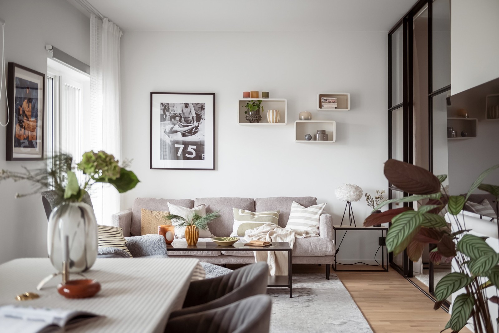 Vardagsrum, kök och matplats – en öppen och social planlösning