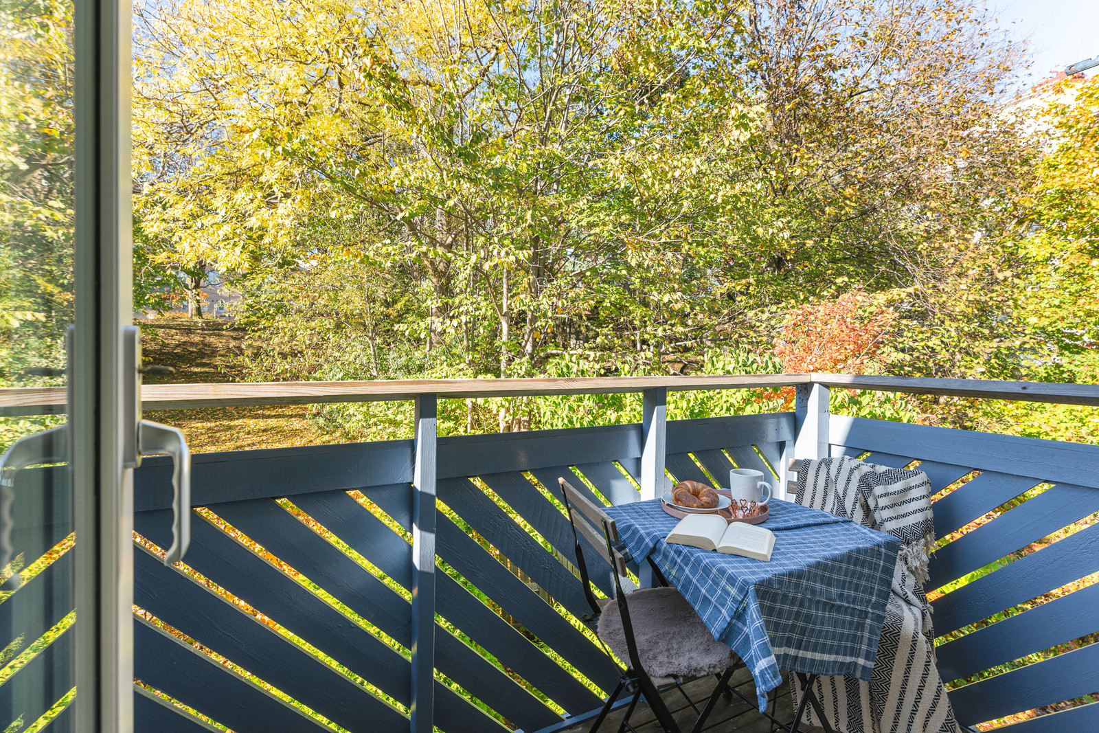 Härlig genomgångstrea med privat läge och solig balkong i västerläge!