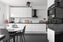 Det fullutrustade köket ligger till höger från hallen. Här har man renoverat med välmedvetna material för maximal komfort. Köksinredningen är från IKEA, gott om arbetsytor med grå kakelplattor på väggen. Köket är utrustat med kyl/frys, induktionshäll, ugn, diskmaskin, fläkt samt inbyggd micro/ugn.