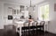 Vardagsrummet är generöst tilltaget och enkelt att möblera med soffgrupp och bokhyllor. Väggarna är målade i en tidlös, elegant ljus ton. Den öppna planlösningen skapar rymd och ger ett luftigt intryck.