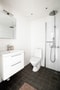 Gå in i bostadens största badrum, där vita kaklade väggar möter ett grått klinkergolv i en stilren kombination. WC, handfat med kommod, belyst spegel, tvättmaskin, torktumlare, handdukstork samt en dusch med väggar av klarglas och tak-dusch ger dig en komplett komfort. Förvaringen löser sig tack vare flertalet vägghängda skåp. Känslan av lyx förstärks med golvvärme, dimbara spotlights och inbyggda Bluetooth högtalare! Varför spara in på badrummet?