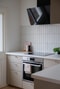 Vidare tar ni er till det renoverade köket från 2025. Skåpsluckorna i beige kulör smälter samman fint med den vita bänkskivan och det vita kaklet som följer väggen ovan. De nätta beslagen på skåpsluckorna matchar byggåret på ett fint sätt tillsammans med det ljuvliga brädgolvet. Från köksfönstret kan ni blicka ut över det lummiga och lugna villaområdet i Kålltorp. Kökets maskinella utrustning består av kyl/frys, ugn, spishäll och fläkt samt diskmaskin. Golvet är av tålig och praktisk klinker.