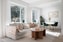 Vardagsrumsdelen i den öppna planlösningen erbjuder en naturlig plats för soffgrupp och tillhörande tv-möbel, samtidigt som den harmoniskt knyter ihop hemmet och skapar sociala ytor tillsammans med resten av lägenheten.