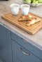 Köket från Kvik är välplanerat med modern touch som sobert och stilfullt bjuder in till matlagningsglädje. Utrustning såsom side-by-side kyl och frys från Samung, integrerad diskmaskin, inbyggd micro samt spis och ugn ger förutsättningar för härlig kokkonst. Den stora bänkskivan i vitlaserad ek ger kontrast till de grå skåpsluckorna med mässingsdetaljer som tillsammans skapar ett exklusivt men tidslöst intryck. Takfönstret ovan det mörkgrå kaklet fyller både funktion men skapar även rymd och tillåter solens strålar att lysa in. Vid köksön finns separat sittyta där morgonens frukost kan avnjutas.