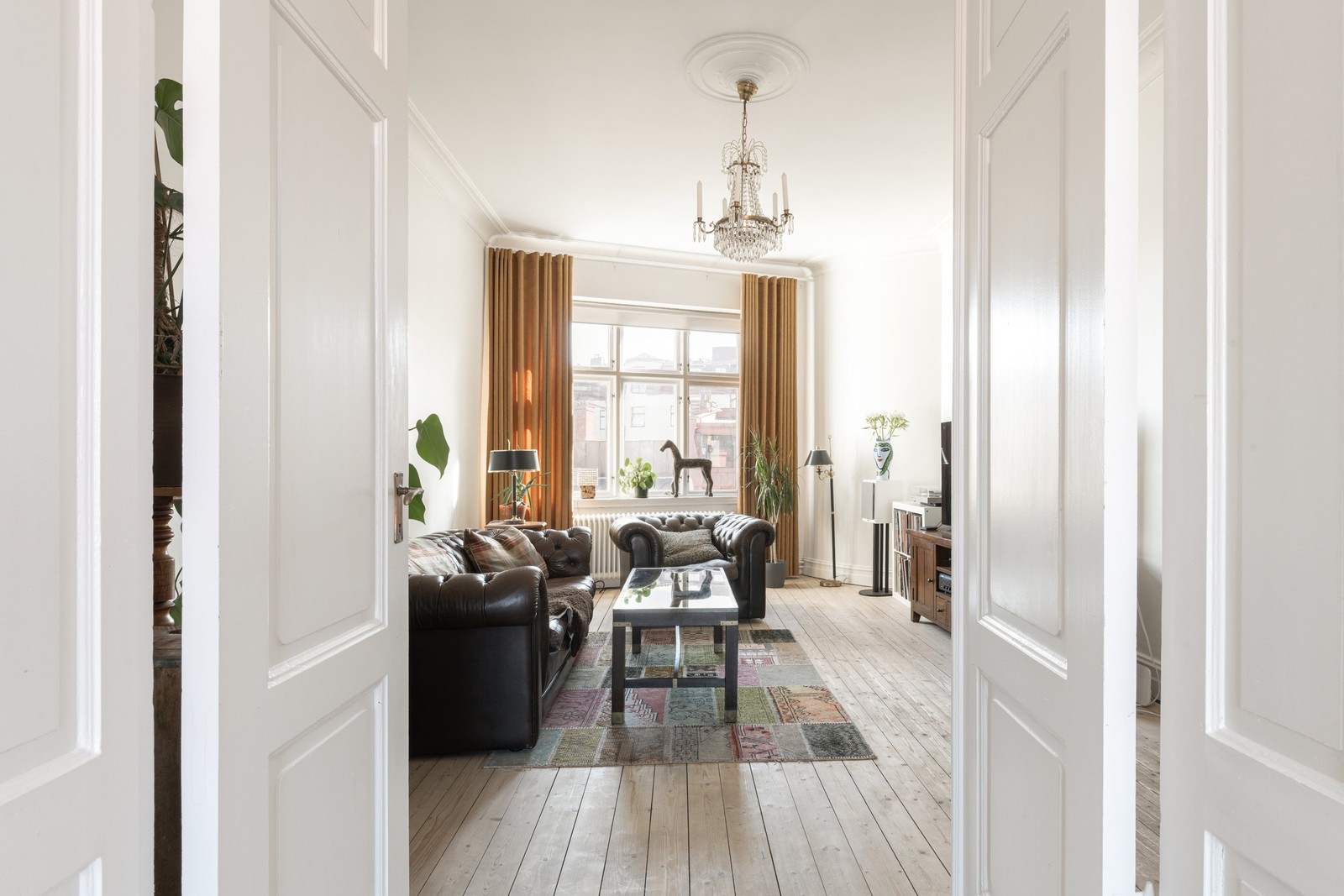 Elegant sekelskiftesvåning högt upp i huset med terass
