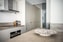 Det exklusiva badrummet går i samma jordnära färgskala som resten av bostaden. Stora klinkerplattor ger rummet karaktär och matchas elegant med övrig inredning. Här finns golvvärme, WC, handfat, dusch samt en stor spegel som täcker ena väggen. Förvaring finns i en stilren kommod och kompletteras av ett hyllplan.