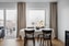 Kök och vardagsrum samspelar i en öppen planlösning som skapar generösa sällskapsytor och ett naturligt flöde mellan rummen. Köket är stilrent utformat med vita luckor och fullt utrustat med kyl och frys, integrerad diskmaskin, inbyggnadsugn och mikro samt induktionshäll. Den tåliga bänkskivan i kvartskomposit ger både ett exklusivt uttryck och goda arbetsytor, samtidigt som kökets utformning gör det lika funktionellt i vardagen som perfekt för sociala tillställningar. Vardagsrummet badar i ljus från fönster i två väderstreck och erbjuder gott om plats för både soffgrupp och matbord.
