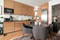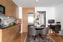 Vidare in i bostaden möts ni av kök och vardagsrum i en social planlösning. Köket bjuder på smakfulla val och tillval i form av köksluckor i ek som möter en bänkskiva i svart sten. Här finns induktionshäll, ugn, integrerad diskmaskin, kyl/frys och mikrovågsugn signerad Siemens. Väggarna är genomgående vita i detta rum. Här finns plats för 4 sittande gäster. Vardagsrumsdelen rymmer i sin enkelhet soffgrupp med tillhörande möblemang.