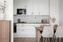 Köket är från Marbodal och har vita skåpsluckor, mörkgrå bänkskiva och vita rektangulära plattor på väggen. Inrett med ugn, induktionshäll, micro och kyl/frys från kvalitetsstarka Siemens. Köket öppnar upp sig fint mot det rymliga vardagsrummet och ger en social känsla.