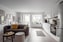 Här möts du av en öppen och social planlösning där kök och vardagsrum harmoniskt smälter samman – perfekt för både vardagsliv och sociala tillställningar. Köket är stilrent med vita skåpsluckor, grå bänkskiva och komplett utrustat med induktionshäll, ugn, mikro samt rostfri kyl/frys. De stora fönsterpartierna släpper in ett generöst ljusinsläpp och skapar en ljus och luftig atmosfär. I vardagsrummet finns gott om plats för både soffgrupp och matplats, och härifrån når du även en av bostadens två uteplatser – en naturlig förlängning av sällskapsytan under sommarhalvåret. På golvet löper en vitlaserad enstavig parkett som ger rummet en ljus och modern känsla.