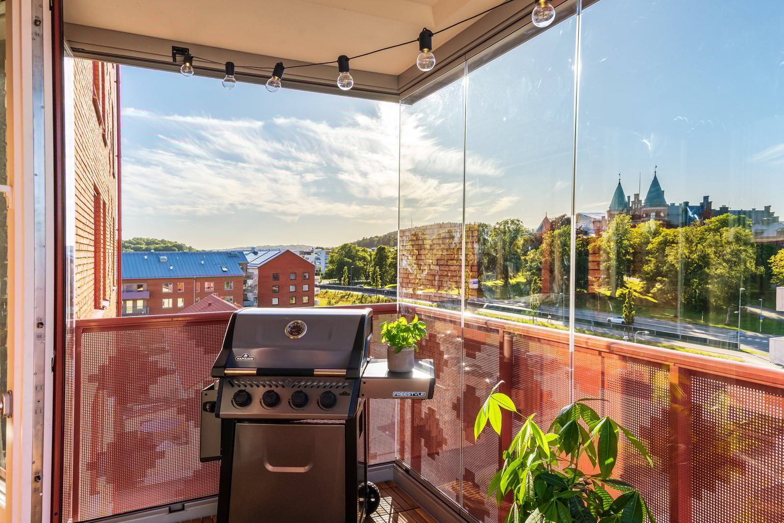 Trerummare i gavelläge med slående utsikt och inglasad balkong!