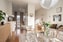 Vardagsrummet är öppet, luftigt och fullständigt dränkt i ljus. Vita väggar och vacker stavparkett bildar en stilren bas för både stor soffgrupp och tillhörande möbler. De stora fönsterpartierna vetter mot innergården och vidare ut mot bostadens absoluta hjärta, den generösa terrassen.