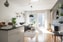 Modern lägenhet med öppen planlösning och solig balkong