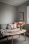 Genom den välkomnande entrén möts ni av en rymlig hall som binder samman bostadens alla delar. Här finns god plats för avhängning av ytterkläder och skor i skoskåp och garderober längst med väggarna. Gråa väggar, vitt tak tillsammans med ett originellt vitlaserat brädgolv– som är genomgående för hela lägenheten – skapar en varm och inbjudande känsla redan från start.