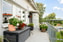 Uteplats 2: Balkong, läge öster. Sikt mot innergården och morgonsol.