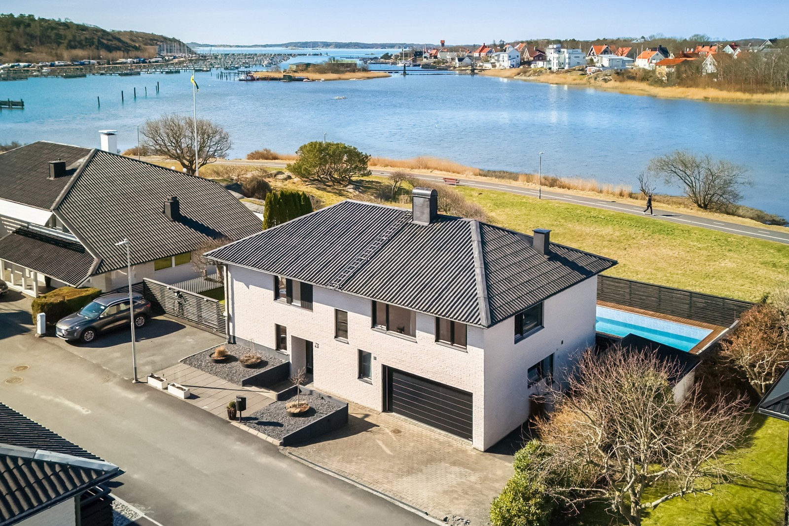 Fräsch, rymlig och välplanerad villa med pool och vacker utsikt över Hinsholmskilen och Långedrag.