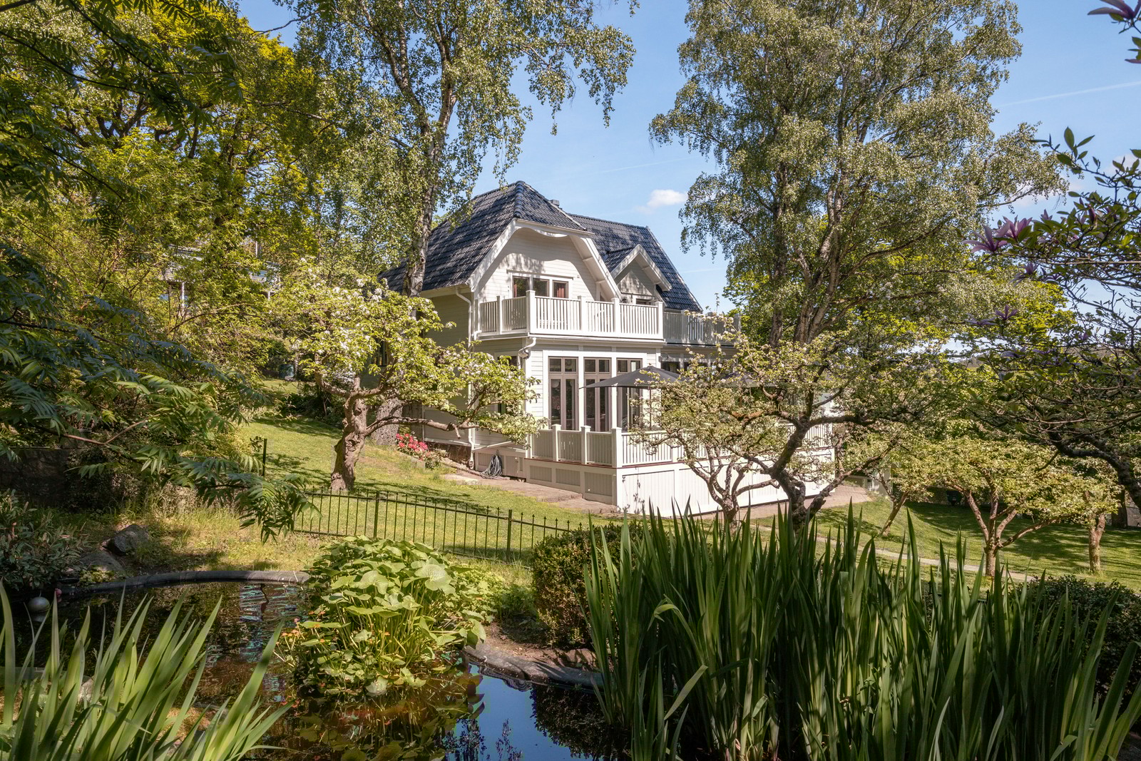 Totalrenoverad patriciervilla med ljusa salonger, ikoniska detaljer och en stor, parkliknande tomt