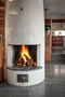 Den höga och spektakulära utsikten över älv och hamn dominerar naturligtvis det första intrycket. De strålande ljusa sällskapsytorna har takhöga glaspartier även i den andra ytterväggen som vetter mot terrassen i söder. Ljuset silas genom den skyddande grönskan och bidrar till den helt privata och insynsskyddade känslan, högt upp på berget. Det stora rummet har en tidlöst ljus och ren arkitektur. Inslag av liggande ekpanel på de rundade sidoväggarna skapar ett organisk formspråk tillsammans med den omgivande naturen. Kalkstensgolvet med vattenburen värme kontrasterar mot de vita taklinjerna som stiger svagt uppåt till en höjd om 3,30 meter. Känslan av rumsvolym och yta är påtaglig och tankarna går till klassiska galleri- eller ateljémiljöer. I mitten tronar en rund och vitputsad murstock med eldstäder i två riktningar. Den doserade murstocken blir som ett designelement som också skapar rumslighet i de öppna ytorna. Detta är ett rum skapat för både fest med många gäster och familjens lugna vardagskvällar. Via glaspartierna kommer du direkt ut på framsidans stenterrass eller ner på den helt skyddade träterrassen på baksidan.