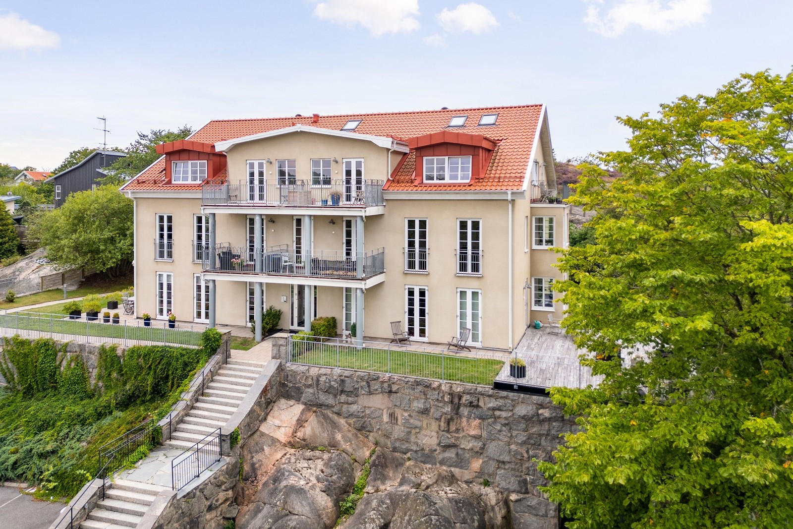 Bjurfors presenterar en sällsynt smakfull trerumsvåning, med utsikt – högt över Långedrag och havet.