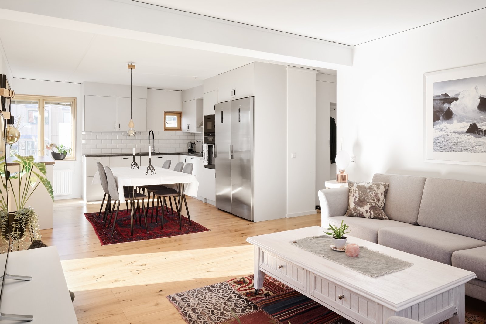 Välplanerad trea i gavelläge som renoverats med fingertoppskänsla. Här får du det bästa av två världar, grönskande omgivning i expansivt närområde.