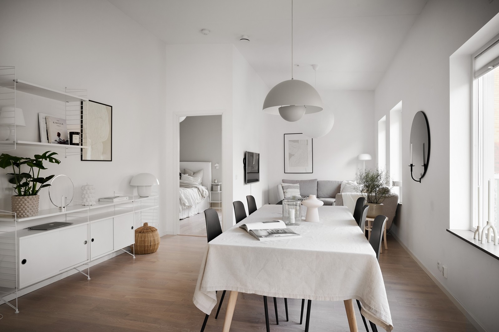 Vidare från hallen når ni vardagsrummet som är lättmöblerat och ljust. Med sina stora fönster får ni en go rymd och här finns god sällskapsyta för trevliga kvällar med vänner och familj. I vardagsrummet finns även en yta perfekt för ett större matbord. Om du önskar kan du göra ett till sovrum där vardagsrummet är idag.