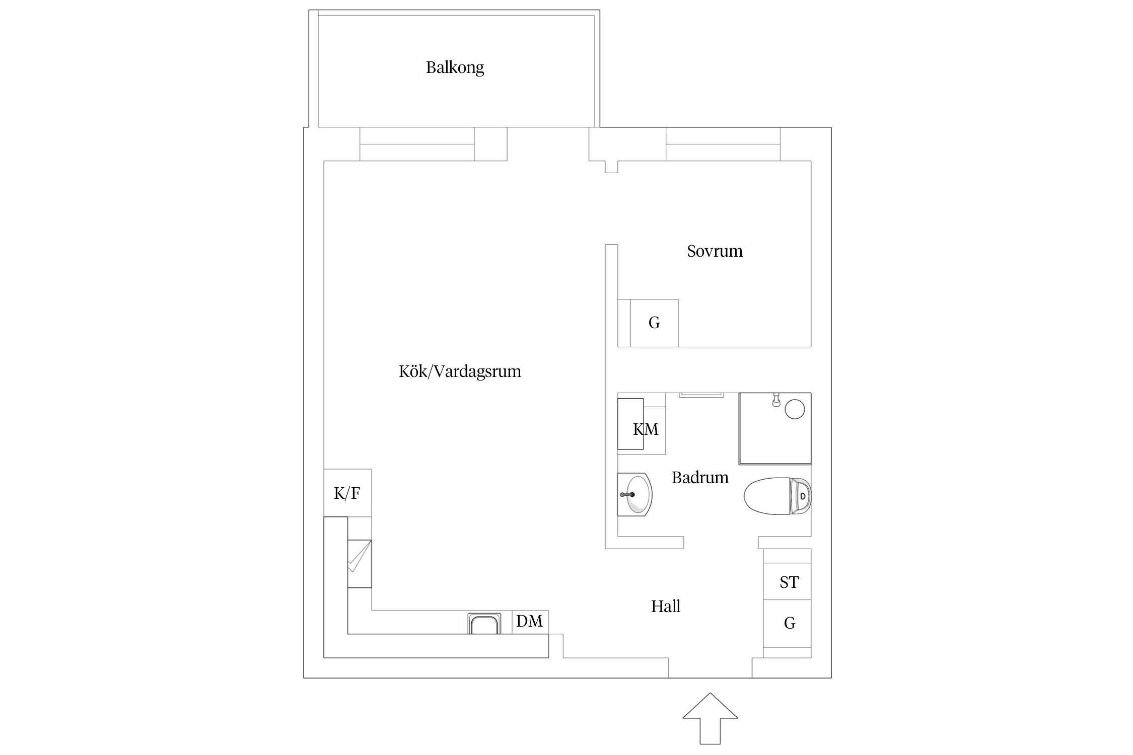 Areauppgifter enligt den ekonomiska planen. Bostaden kan disponeras som en tvåa.
