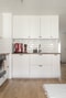 I en öppen planlösning mot vardagsrummet finner vi bostadens kök. Köket är fullutrustat och renoverat 2024. utrustningen består av diskmaskin, kyl, frys, ugn och induktionshäll. I köket erbjuds även en naturlig matplats för minst 4 sittandes gäster.