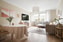 Vardagsrummet är likt hallen klätt i ekparkett och beiga väggar. Rummet är luftigt, lättmöblerat och berikat med ljus. Plats finns för soffgrupp och större matplats samt annat önskat möblemang. Härifrån nås bostadens västerliggande balkong.